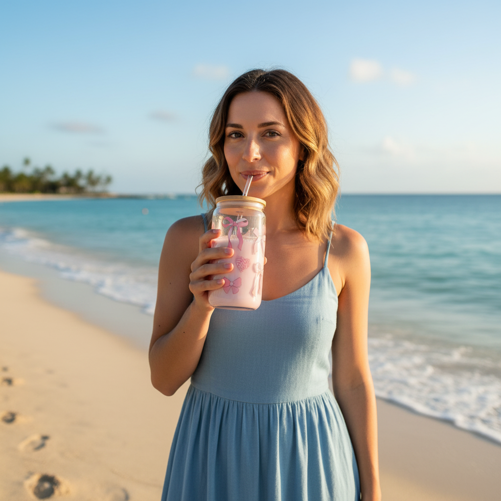 🎀 Sip in Style with This Elegant Bow-Themed Glass Tumbler