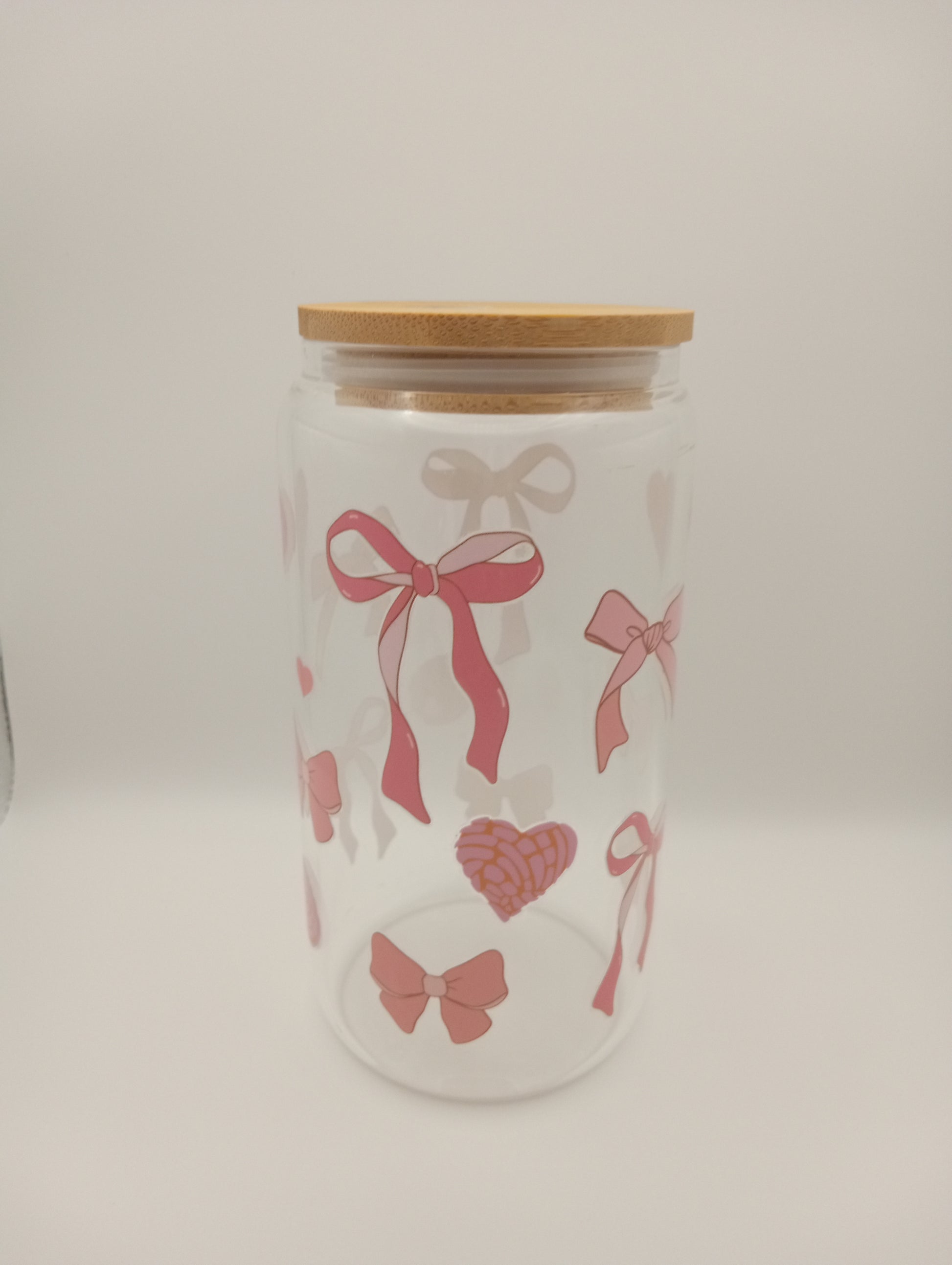 Add a touch of sophistication to every sip with this beautifully handcrafted 16oz glass tumbler featuring a delicate bow design!