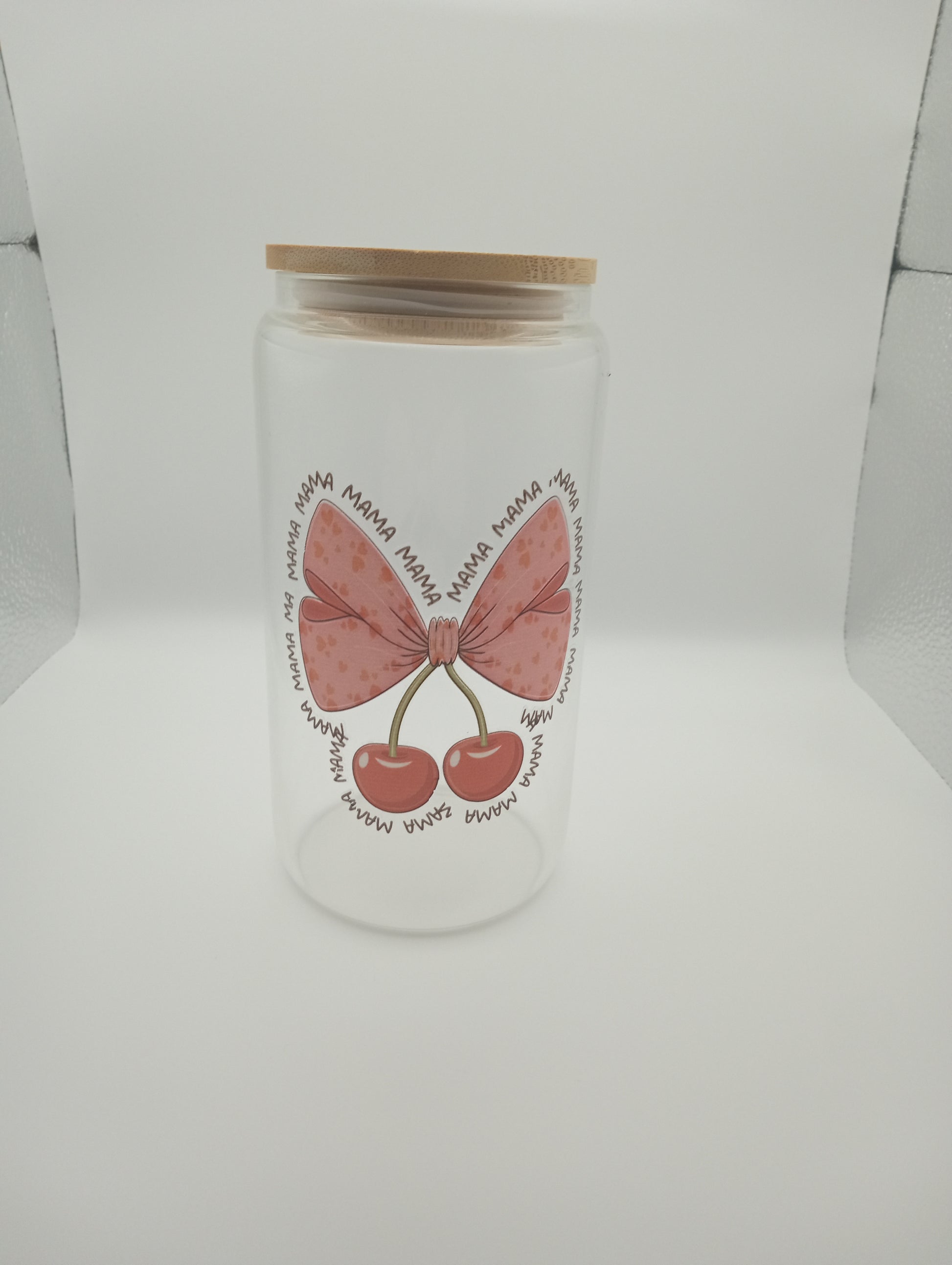- 1 Cherry Bow Glass Tumbler (16oz capacity)